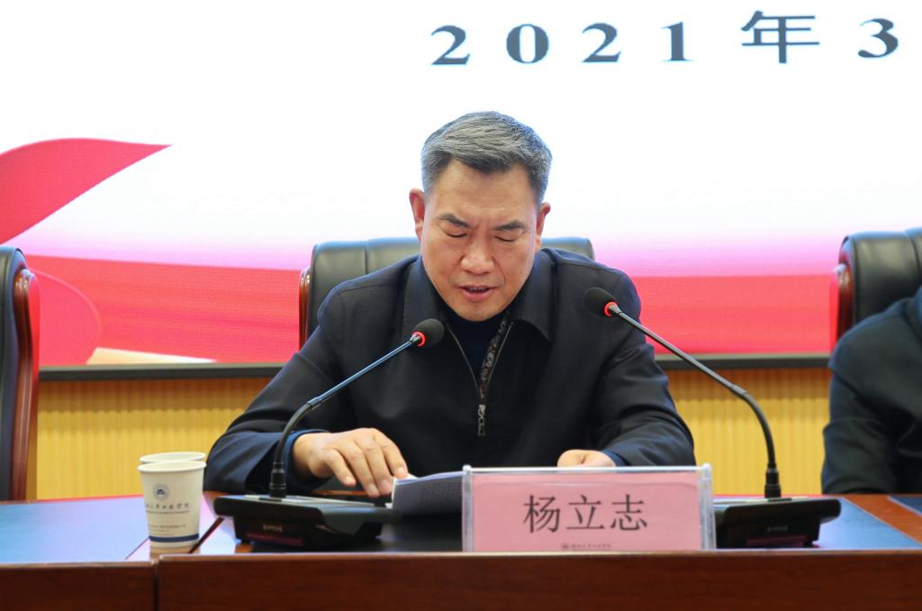 校党委副书记杨立志通报了2020年度学校党委领导班子民主生活会整体情况。他从方案制定、学习研讨、意见收集、谈心谈话、检视剖析等五个方面对会议的准备情况作了详细说明,对领导班子及成员检视剖析、批评和自我批评情况进行了一一通报,对省委督导组的点评讲话精神进行了重点传达。