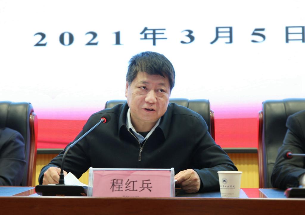 本网讯(文、图/广娟)3月5日下午,学校在逸夫图书馆报告厅召开了2020年度学校党委领导班子民主生活会情况通报会,校党委书记程红兵主持了大会,全体校领导、全体中层干部参加了大会。